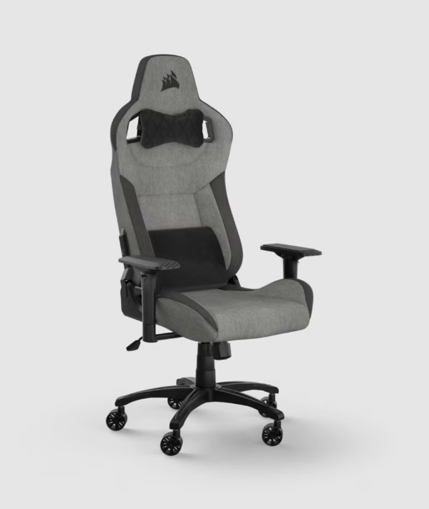 - The CORSAIR T3 RUSH gaming chair combines racing-inspired design and contoured comfort, with a breathable soft cloth.exterior, padded neck cushion and memory foam lumbar support.